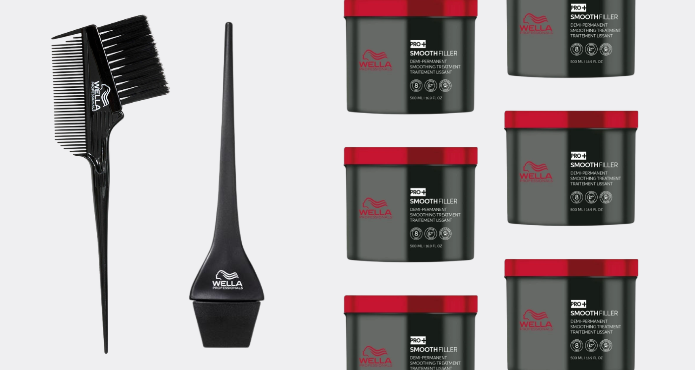 Buy 4 Smoothfiller 500ml & 1 Ultimate Smooth Shampoo 1l, Get a Smoothfiller Flat Iron, 2 Smoothfiller brush's, 2 Smoothfiller spatula's and 2 Wella professionals thin red combs FREE